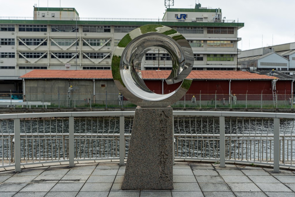 この大きく働き方が変わる流れに伴って、当時、兵庫労働基準局長だった畠中信夫は、機運醸成となるシンボルを制作することを発案。そして過去に、労働時間の短縮が初めて大々的にかつ、組織的に実施された神戸の地で、川崎重工・神戸工場をバックに記念碑は設置された。