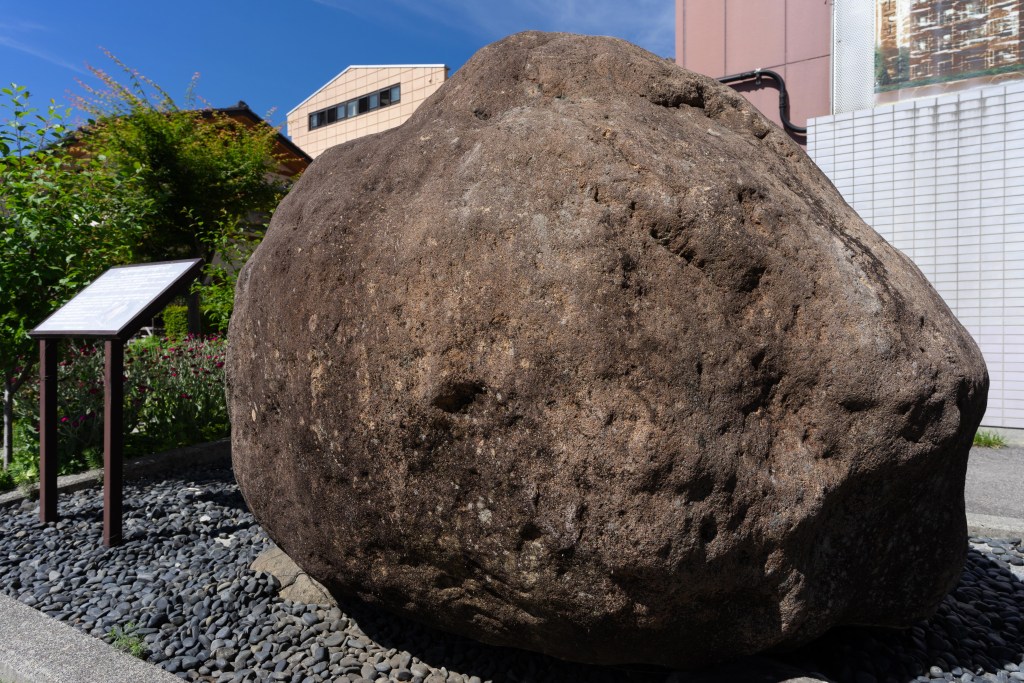 市は、このような巨石が突如出土したことに「単なる偶然とは思えない」ものを感じ、神の磐座であると信じて、駅前に保存したという。