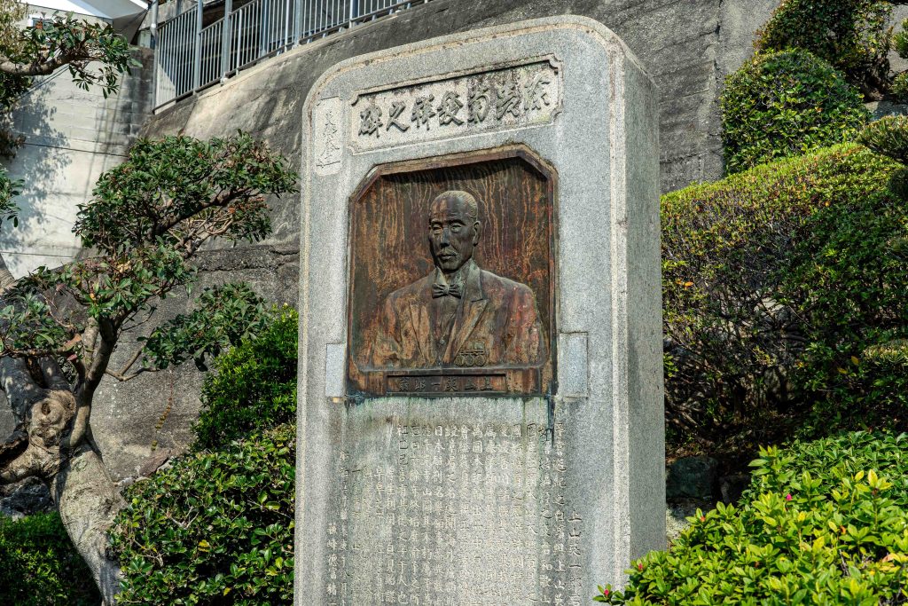 また、同じ尾道の本州側にある千光寺公園には、英一郎のレリーフをはめ込んだ「頌徳碑」がひっそりと建てられている。