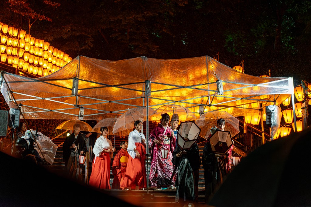 もちろん、イベントがないわけではない。日中は物販や出演声優のトークショー、主題歌を担当したnano.RIPEのライブなどが毎年行われているが、加えて地元や金沢市と所縁のある演者も出演している(和太鼓などの邦楽器奏者や中高の吹奏楽部、北陸のご当地アイドルなど)。その狙いとしては、アニメ発イベントというだけでなく、地元と共に築き上げ、根ざしていくという思いがある(2024年は大雨の影響で和太鼓演奏等は無くなってしまったが)。また神事に関しても、行列や神様役には地元の人々が参加するなど、一丸となって行われてる。